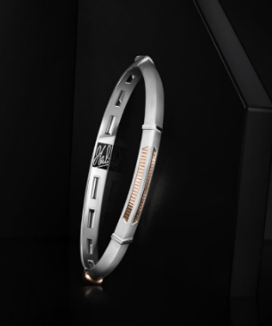 Part of the latest drop from the MS Dhoni Signature Edition, this dual-tone wristwear is a bold blend of structure and elegance. Featuring rectangular cut-outs and a ribbed rose gold inlay, it’s crafted in 95% pure platinum – a metal known for its enduring strength. Making it truly rare. Etched with Dhoni’s signature on the inner base, it’s made for those who lead with quiet confidence and carry greatness within
